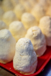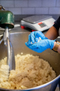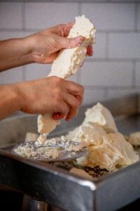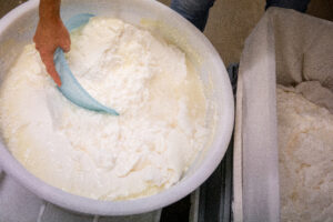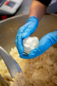 La Boulette de Wallonie est issue d’un procédé de fabrication unique. Après avoir été égoutté et pressé, le caillé est émietté de façon à obtenir des grains fins et homogènes, puis mis à fermenter pendant 2 à 5 jours. Ensuite, les grains sont rassemblés sous la forme d’une boule.